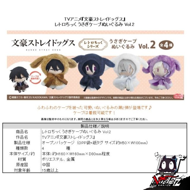 [訂購| 2024年2月内|日版| 截單2023/10/27]文豪野犬Stray Dogs レトロちっく うさぎケープ布偶公仔 Vol.2 (共4款)