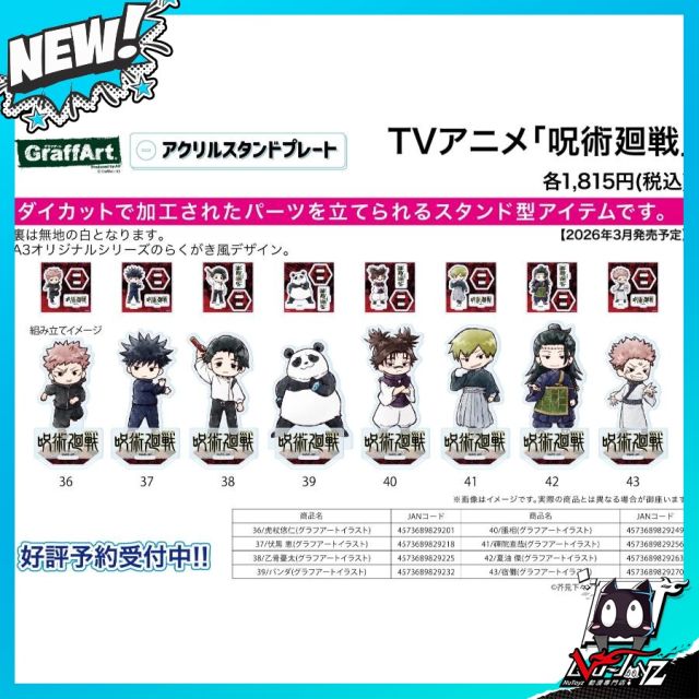 [訂購| 2026年3月内|日版| 截單2026/01/25]呪術廻戦 亞克力立牌プレート(共8款)