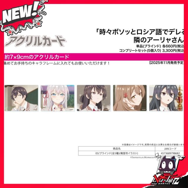 [訂購| 2025年11月内|日版| 截單2025/09/28]亞克力CARD 不時輕聲地以俄語遮羞的鄰座艾莉同學 03 場面写插畫