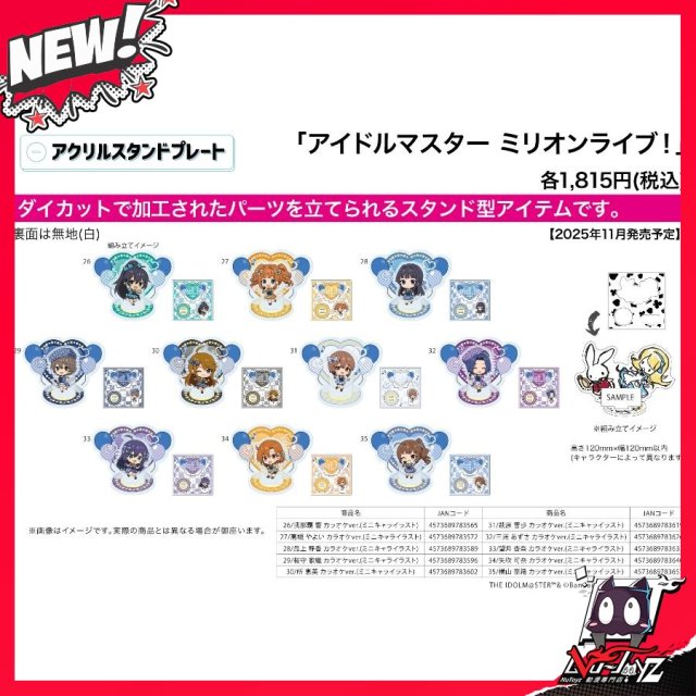 [訂購| 2025年11月内|日版| 截單2025/09/28]亞克力立牌プレート IDOLMASTER偶像大師 ミリオンライブ! カラオケVer. (共10款)