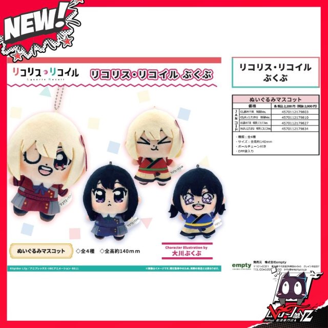 [訂購| 2026年3月内|日版| 截單2025/11/14]Lycoris Recoil 莉可麗絲 ぶくぶ 布偶公仔擺設 (共4款)