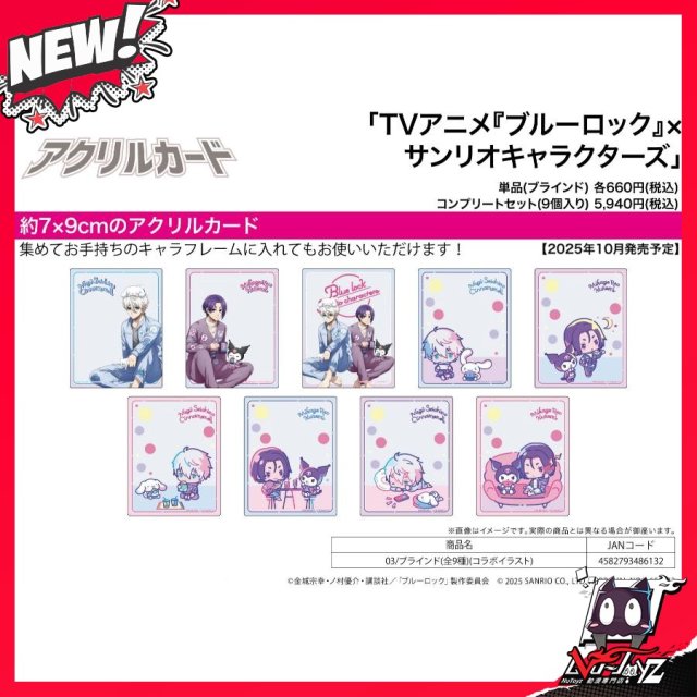 [訂購| 2025年10月内|日版| 截單2025/08/08]亞克力CARD BLUE LOCK 藍色監獄×SANRIO角色 03 コラボ插畫