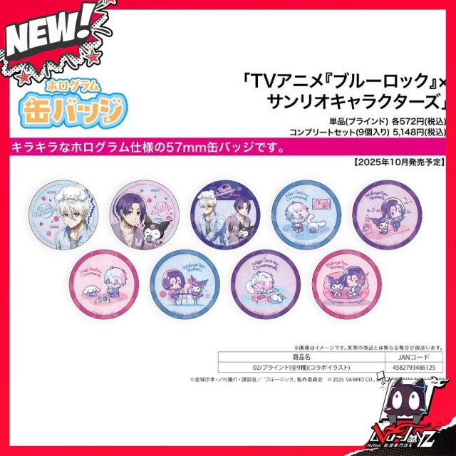 [訂購| 2025年10月内|日版| 截單2025/08/08]ホログラム襟章(57mm) BLUE LOCK 藍色監獄×SANRIO角色 02 コラボ插畫