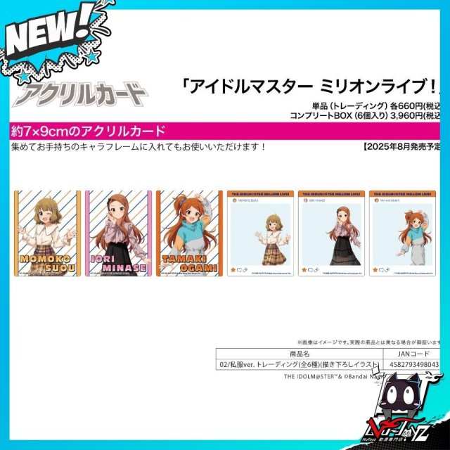 [訂購| 2025年8月内|日版| 截單2025/06/29]亞克力CARD IDOLMASTER偶像大師 ミリオンライブ! 02 私服Ver.(描き下ろし插畫)