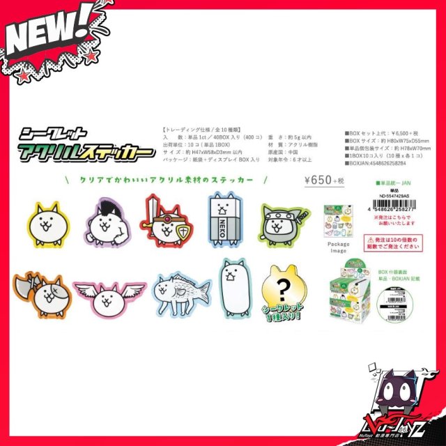 [訂購| 2025年8月内|日版| 截單2025/05/05]貓咪大戰爭 シークレット亞克力貼紙sticker