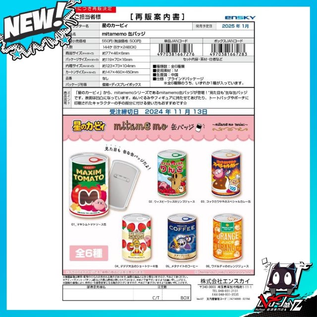 [訂購| 2025年1月内|日版| 截單2024/11/09]星之卡比 【再販】mitamemo 襟章