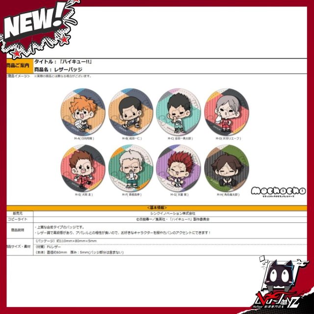 [訂購| 2024年12月内|日版| 截單2024/10/14]排球少年!! みんなmochocho化大作戦! 第1弾 皮革襟章 (共8款)