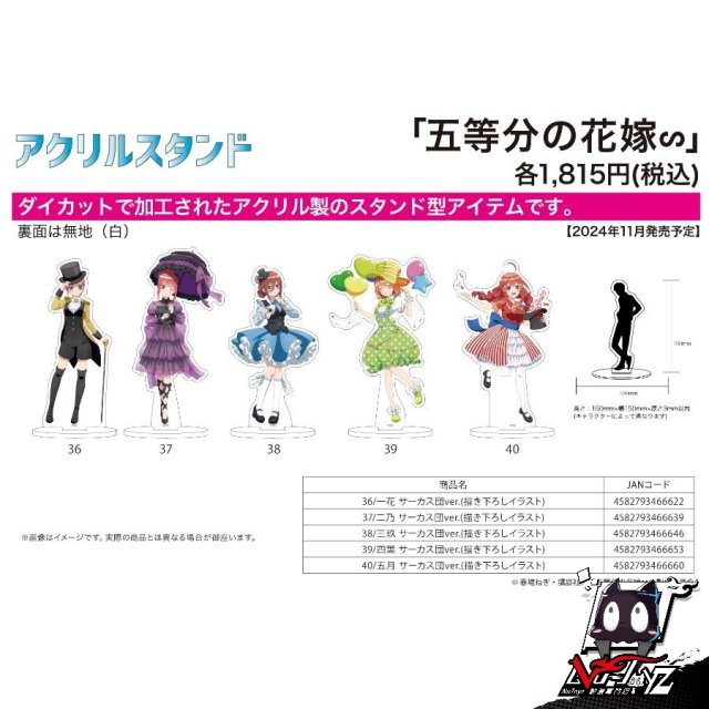 [訂購| 2024年11月内|日版| 截單2024/09/22]五等分の花嫁∽亞克力立牌 サーカス団Ver. (共5款)