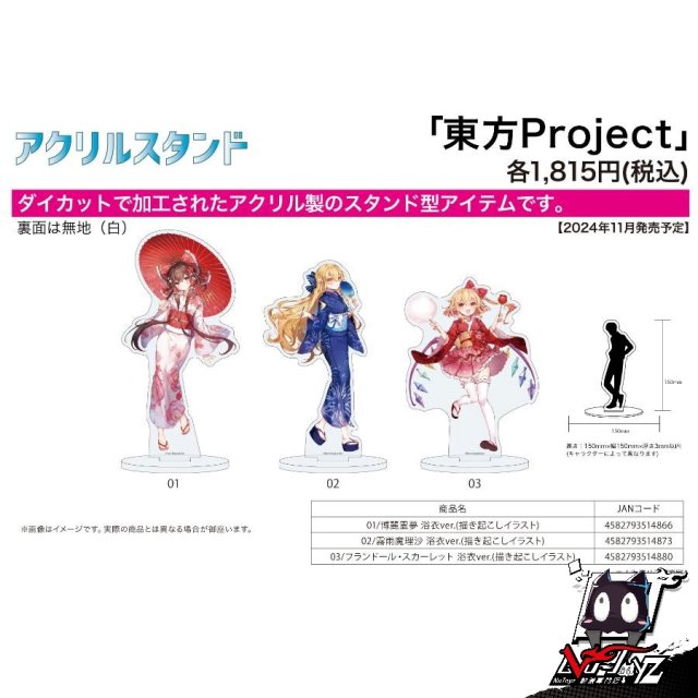 [訂購| 2024年11月内|日版| 截單2024/09/16]東方Project 亞克力立牌 浴衣Ver.(共3款)