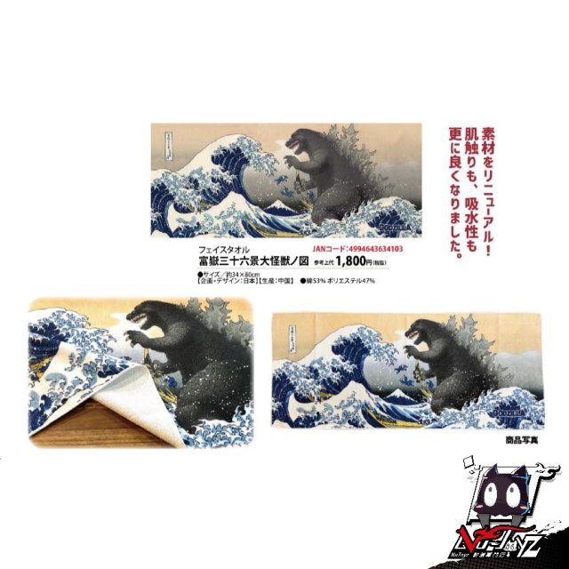 [訂購| 2024年9月内|日版| 截單2024/05/30]哥斯拉 FACE毛巾 富嶽三十六景大怪獣ノ図