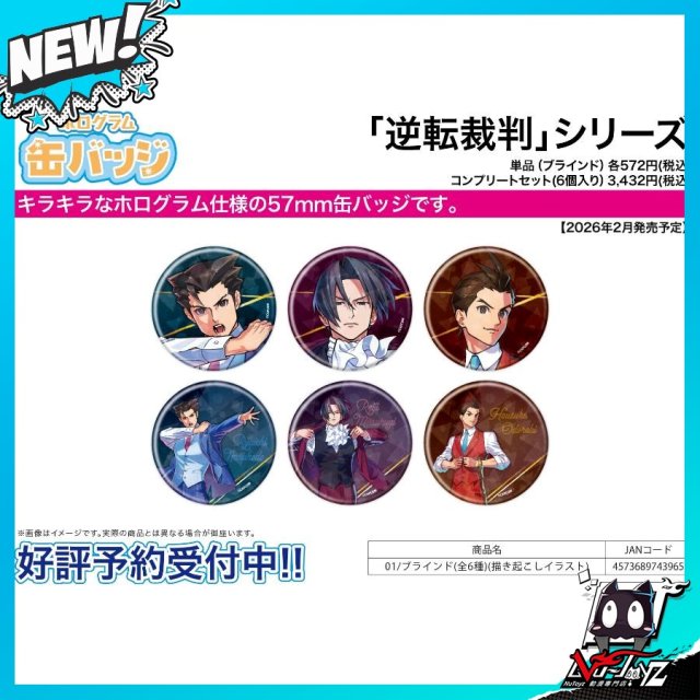 [訂購| 2026年2月内|日版| 截單2025/12/14]ホログラム襟章(57mm) 逆轉裁判系列 01 描き起こし插畫