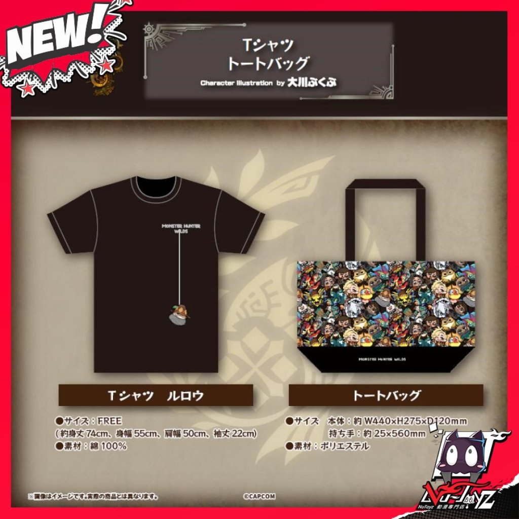 [訂購| 2026年3月内|日版| 截單2026/01/04]MH MONSTER HUNTER 魔物獵人ワイルズ×ぶくぶ T-Shirt/環保BAG包